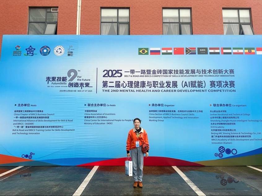 2025年11月6日,由金砖国家工商理事会中方理事会、一带一路暨金砖国家技能发展国际联盟、“一带一路”暨金砖国家技能发展与技术创新培训中心及教育部中外人文交流中心联合主办“2025一带一路暨金砖国家技能发展与技术创新大赛之第二届心理健康与职业发展(AI赋能)赛项决赛(国赛)”在乐山职业技术学院正式启幕。数字商务学院李悦老师受邀担任本次国赛裁判,以专业素养为赛事公正开展保驾护航,为“心理健康+AI”复合型人才选拔注入重要力量。