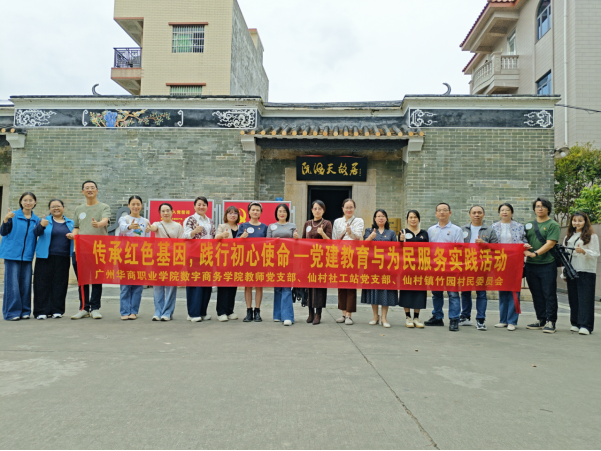 为强化教师党性修养、筑牢理想信念根基,积极践行群众路线、主动为民办实事,10 月 29 日下午 2:30-4:00,数字商务学院教师党支部组织党员教师,联合仙村镇社工、竹园村村委工作人员及志愿者,赴仙村镇竹园村、阮海天故居开展“传承红色基因,践行初心使命”党建教育与为民服务实践活动,以红色教育铸魂,以实际行动暖民心。