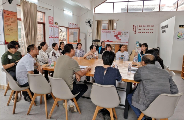 下午3:40分,全体人员返回村委集合点,开展座谈总结与红色互动活动。教师党支部书记张丽菠进行简短总结,号召全体教师以革命先辈为榜样,坚守教育初心、践行服务使命。1-2名党员教师代表分享感悟,纷纷表示“通过近距离感受阮海天同志的革命精神,更深刻理解了‘为人民服务’的本质,今后将把这份精神融入教学工作,以实际行动影响学生、服务社会”。各小组依次汇报探访情况,不仅重点说明群众需求及现场提供的帮助,更分享了参与活动的收获与体会——有的组长提到“与困难群众面对面交流,让我真切感受到‘为民服务’不是口号,而是要站在群众角度解决实际问题”,有的则表示 “小组分工协作的过程,既提升了团队凝聚力,也让我学会了更高效地开展服务工作”。汇报过程中,组内教师主动补充记录细节,何社工、胡社工同步协助整理需求清单,活动负责人现场明确后续帮扶跟进人,确保群众诉求 “件件有回应、事事有着落”。