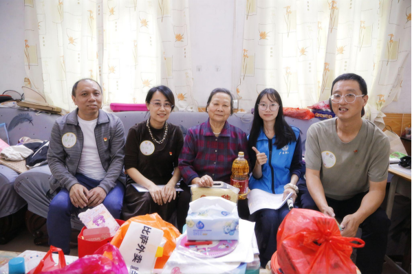 每组由1名教师担任组长,明确分工:2人主导沟通交流、1人协助递送物资、1人记录需求、1人负责拍照。在社工的引导下,各小组前往周边困难群众家中,与群众拉家常、问需求,为群众送上关怀与慰问物资,耐心倾听群众生活中的难题,并现场提供政策解读、情绪疏导等帮助。教师们用真诚的态度、务实的行动,让困难群众感受到党组织的温暖,践行“从群众中来,到群众中去”的群众路线。